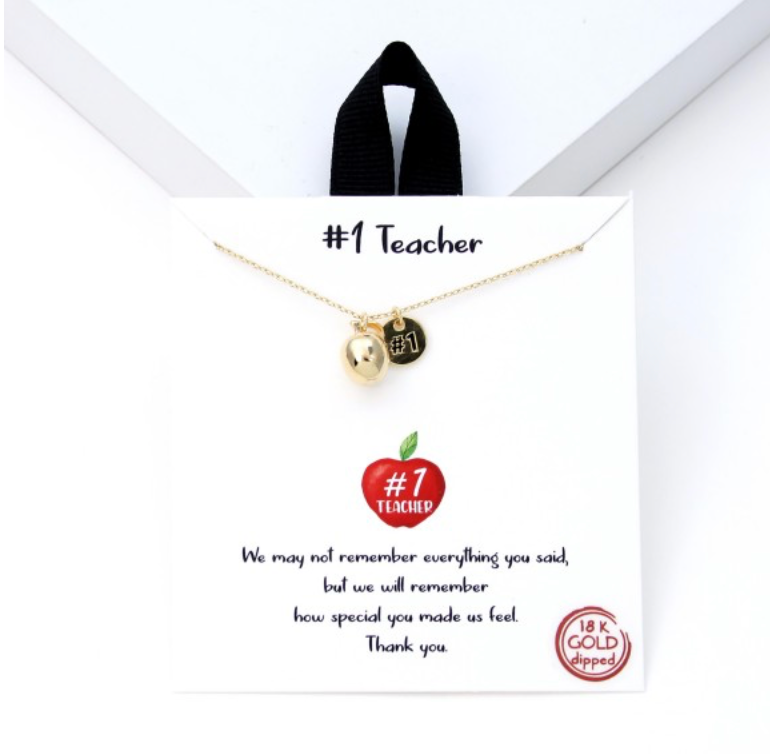 Dainty Chain Link Necklace Featuring Teacher Apple and #1 Pendant
